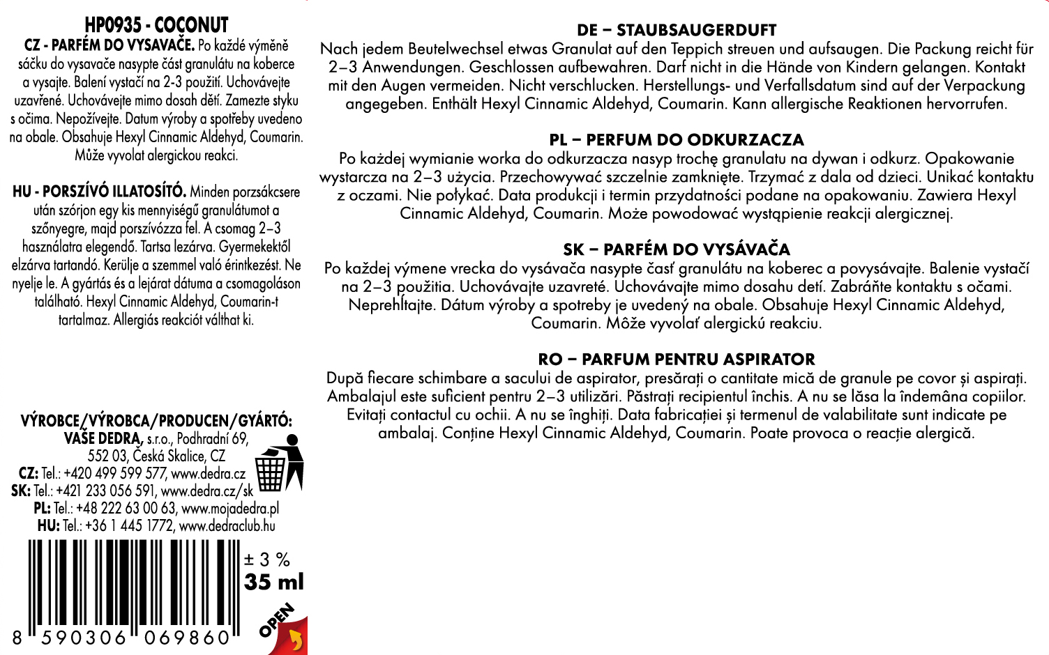 Výrobce: Vaše Dedra s. r. o., Podhradní 69, Česká Skalice, Česká republika