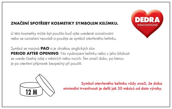 Ještě doplníme, že tento symbol kelímku naleznete na kosmetických produktech nejen DEDRY, ale i na dalších kosmetických výrobcích na celém trhu.