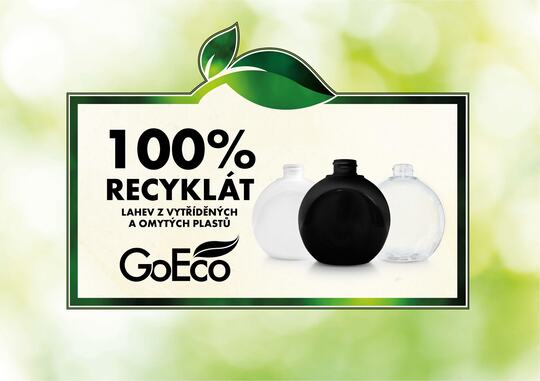 GoEco láhve z recyklátu jsou lepší a šetrnější, než balení drogerie do skla, protože na zahřátí plastu při výrobě je potřeba mnohem menší množství elektřiny (nižší teplota tavení plastu). Plasty se při výrobě nemusí zahřívat/tavit na tak vysokou teplotu, jako je tomu u recyklace skla (vysoká teplota tavení skla).