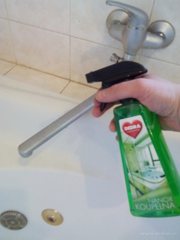 Čistič na vodní kámen a šedý povlak od vodního kamene v koupelně. Perfektně vyčistí jakýkoliv obklad nebo skleněnou plochu v koupelně, která je v kontaktu s vodou a usazuje se na ní vodní kámen.