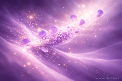 V srdci rozkvétají fialky, jasmín a jemný šeřík, vytvářející romantickou a harmonickou atmosféru.