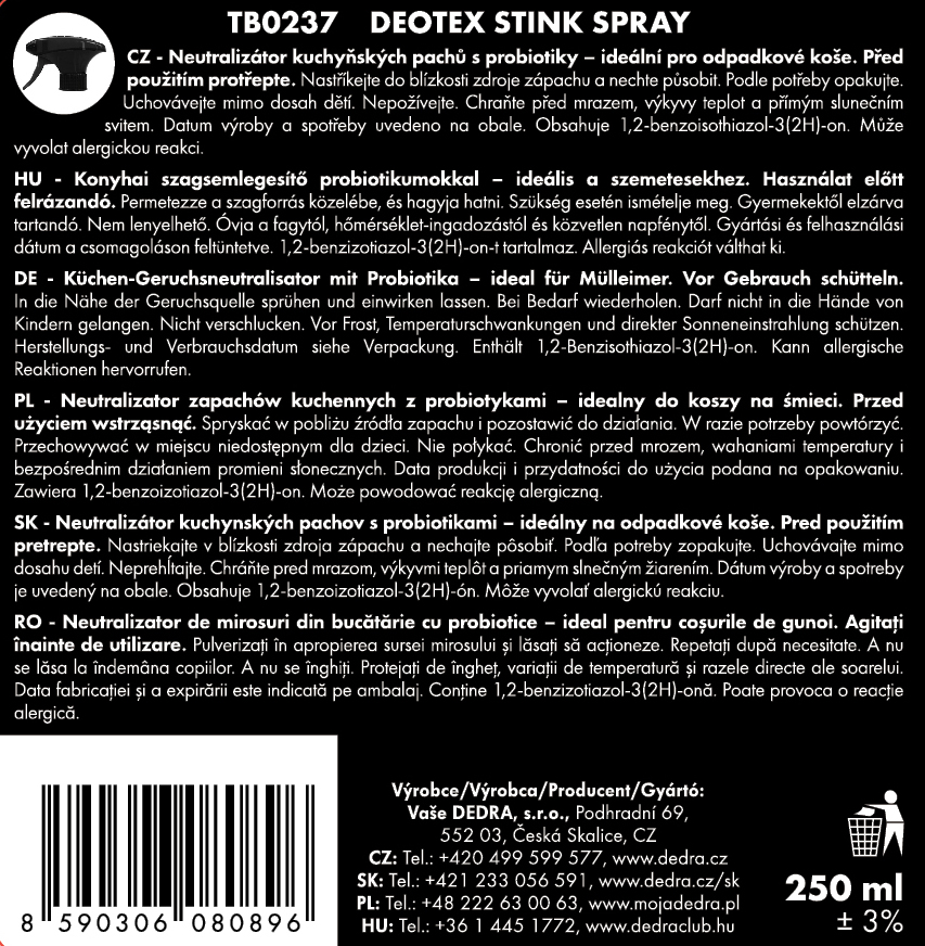 DEOTEX® STINK SPRAY – probiotický sprej na odpadkové koše, kuchyňské povrchy & dřezy proti zápachu | 250 ml.